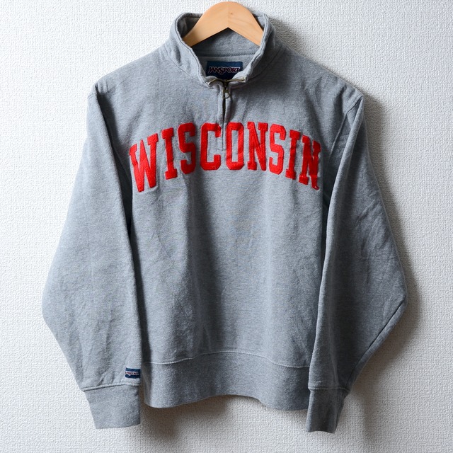 JANSPORT HALF-ZIP SWEATSHIRT ジャンスポート ハーフジップ スウェットシャツ グレーのJANSPORT製XSサイズトレーナー、WISCONSINの刺繍入り。 - ブランド: JANSPORT - 色: グレー - サイズ: XS - デザイン: WISCONSINの刺繍 カラー...グレイ系 汚れ・破れ...なし 採寸 総丈...58cm 肩幅...49cm 横幅...50cm 袖丈...56cm 商品番号 05-0129 #nugarage