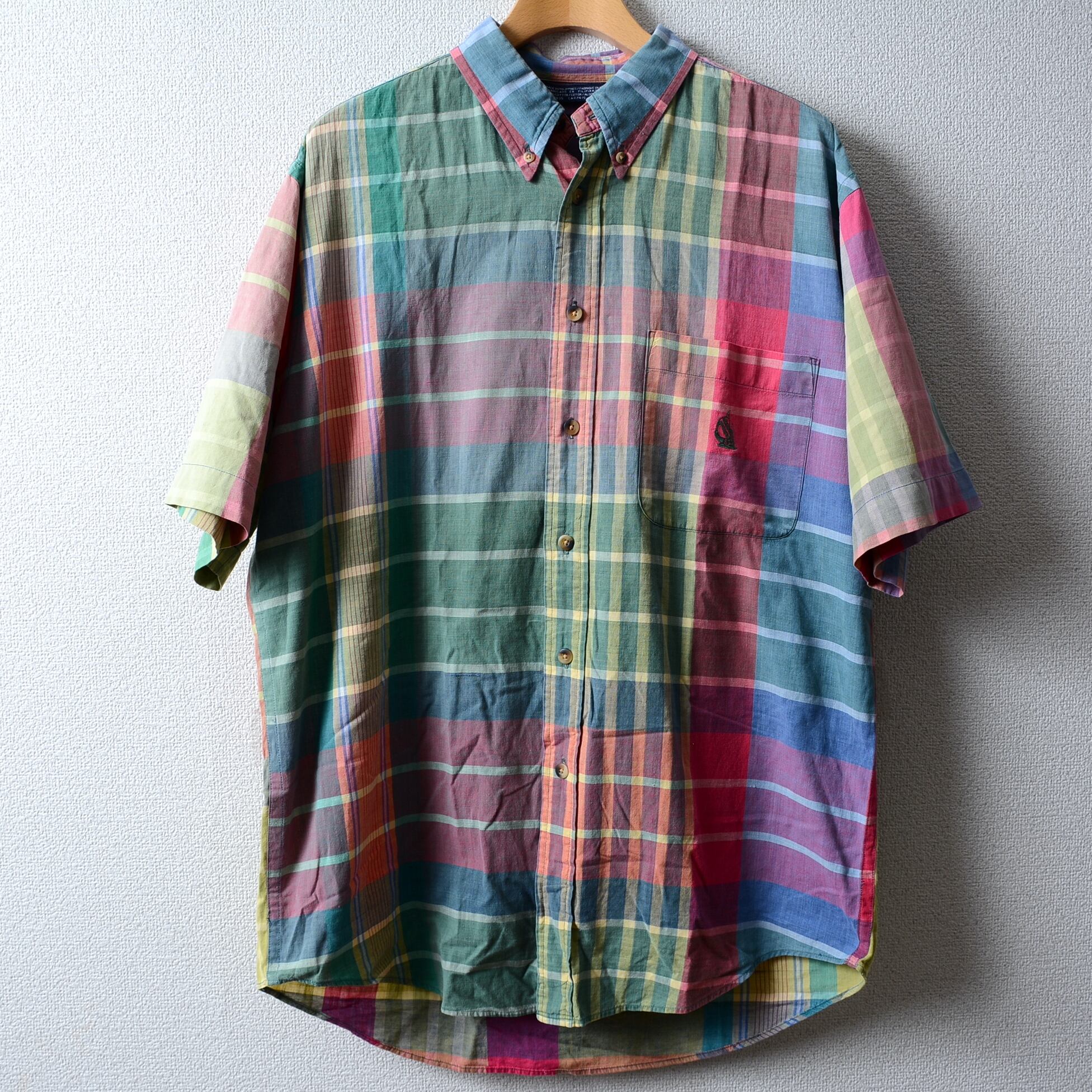 マルチカラーのチェック柄シャツ、Lサイズ、綿ポリ混合素材。