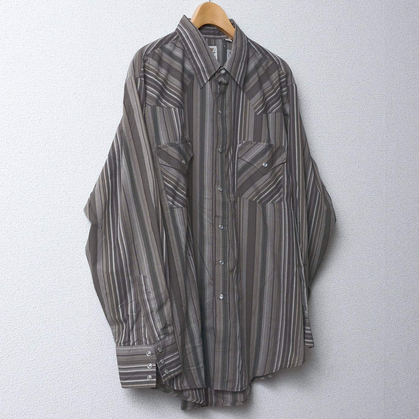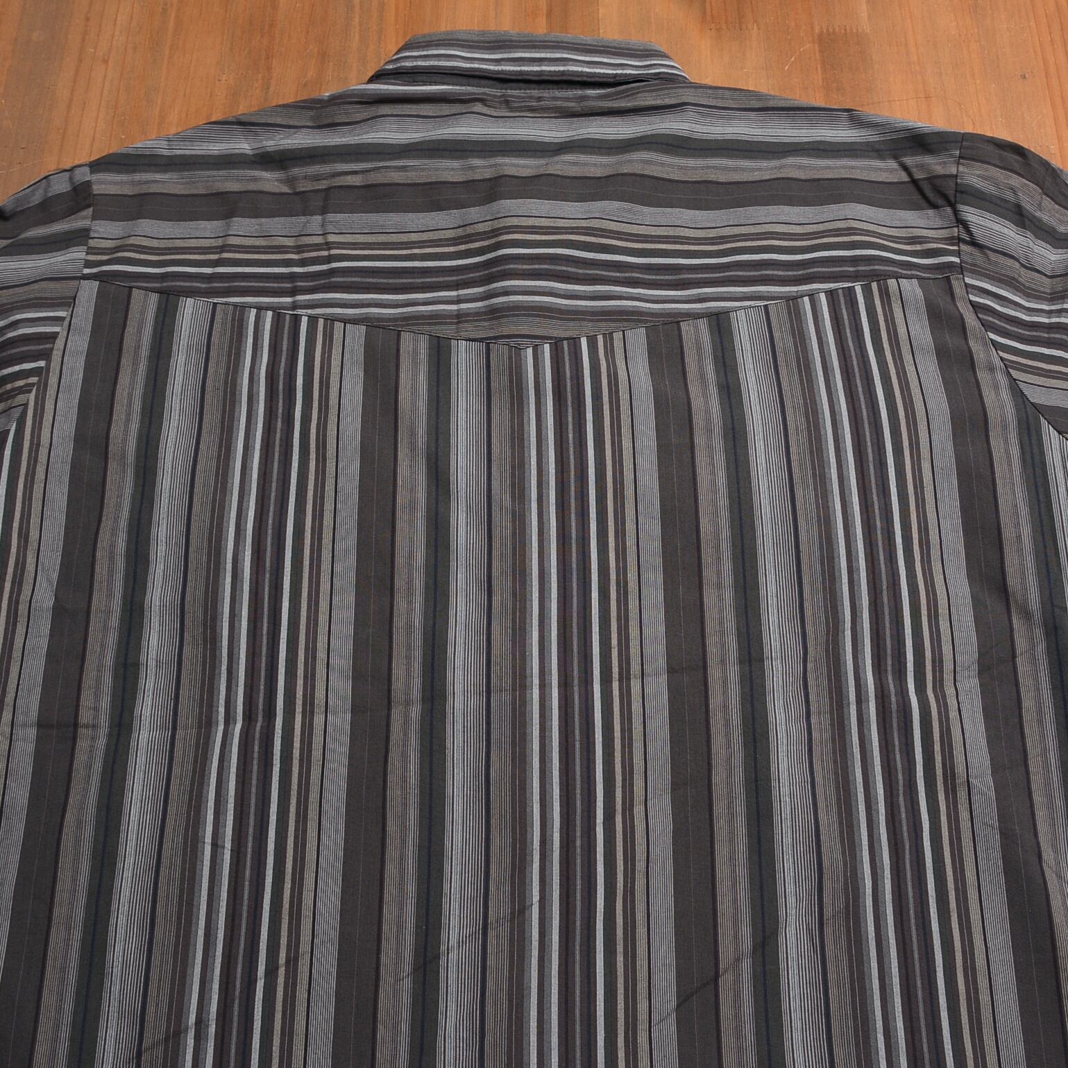 ストライプ柄のXLサイズの長袖シャツ、70-90年代のデザイン。