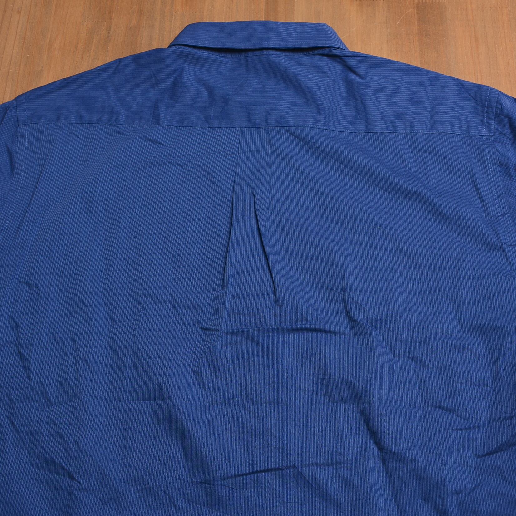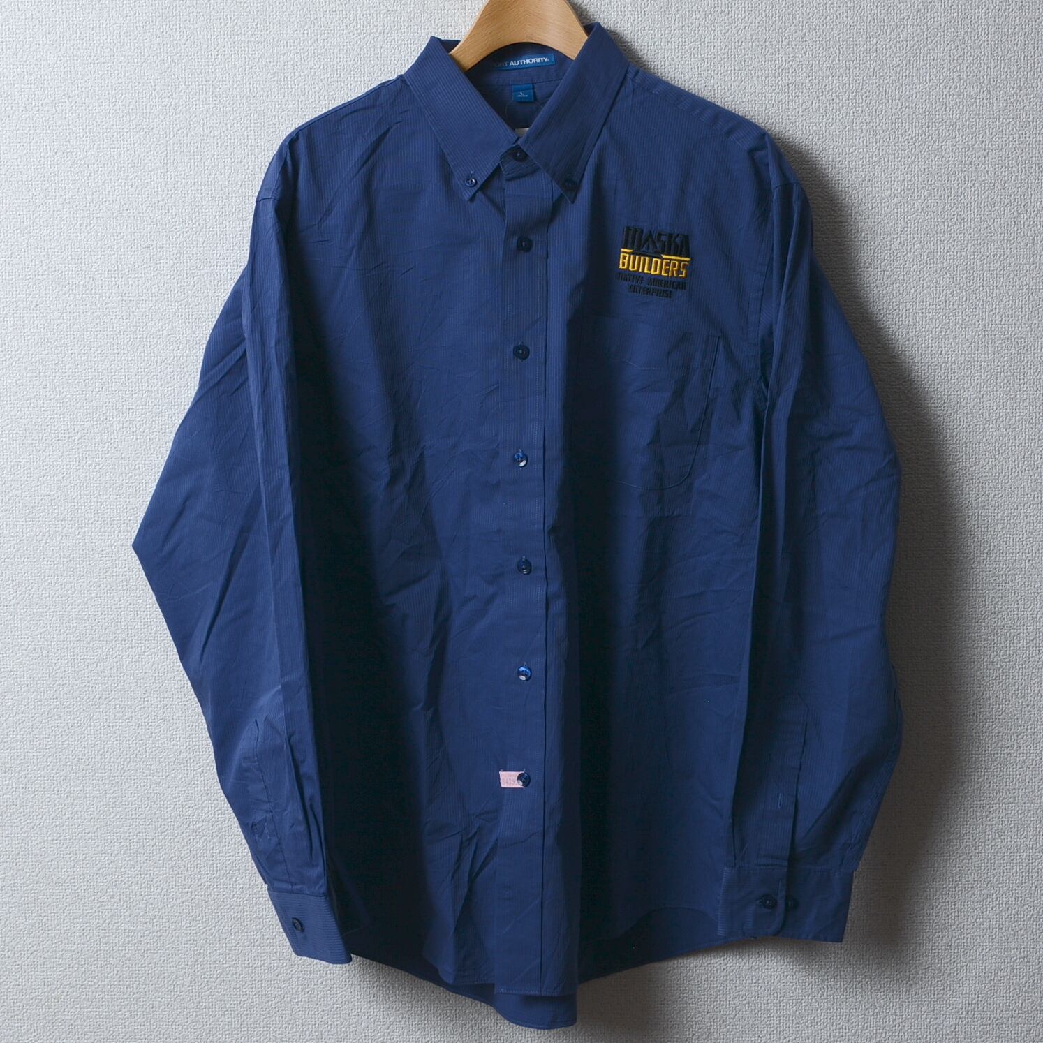 ネイビーのPORT AUTHORITY製長袖シャツ、BUILDERSロゴ刺繍入り、US Lサイズ。