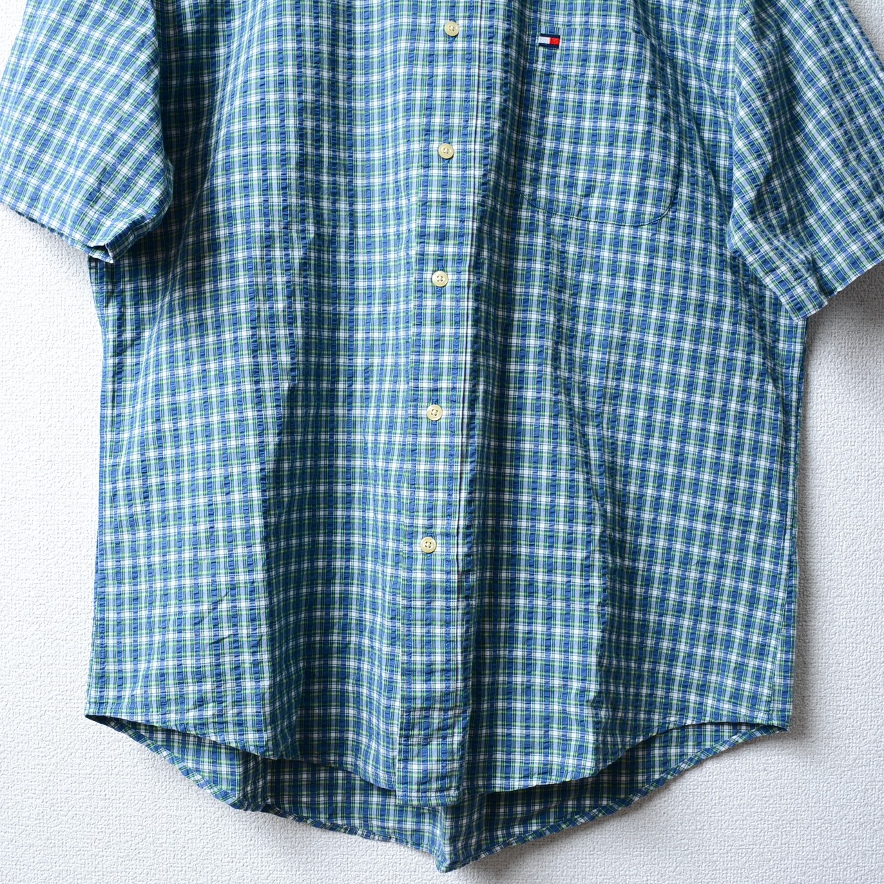 100%コットン製のチェック柄半袖シャツ、US Lサイズ。