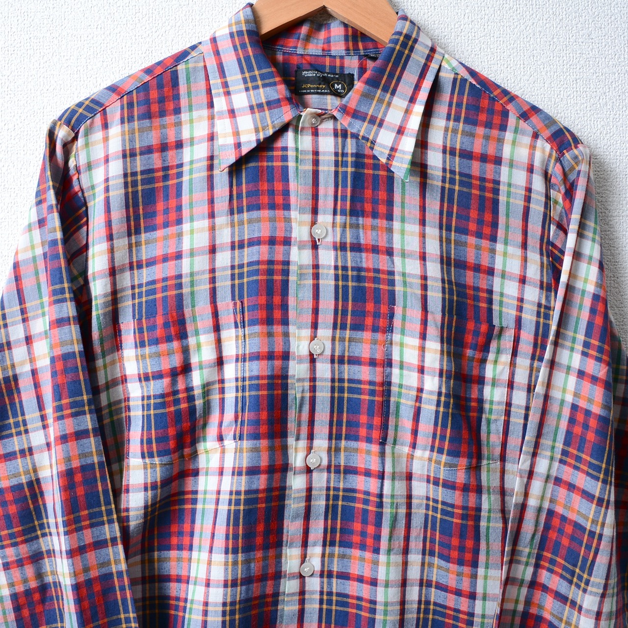 70年代のJC Penney製、US Mサイズのチェック柄長袖シャツ。