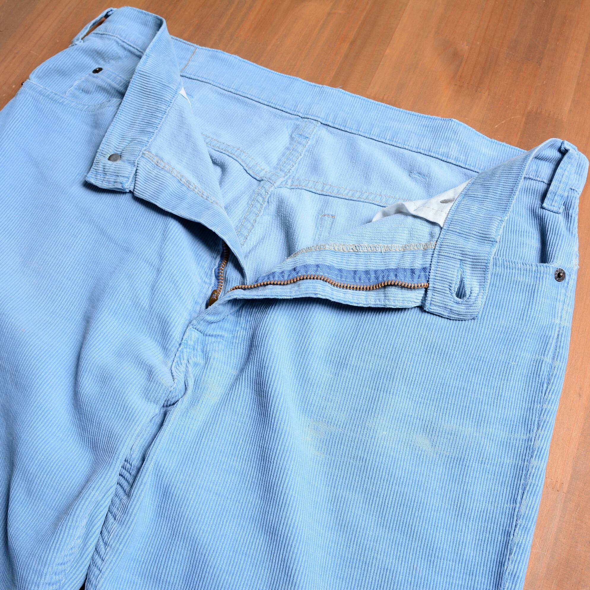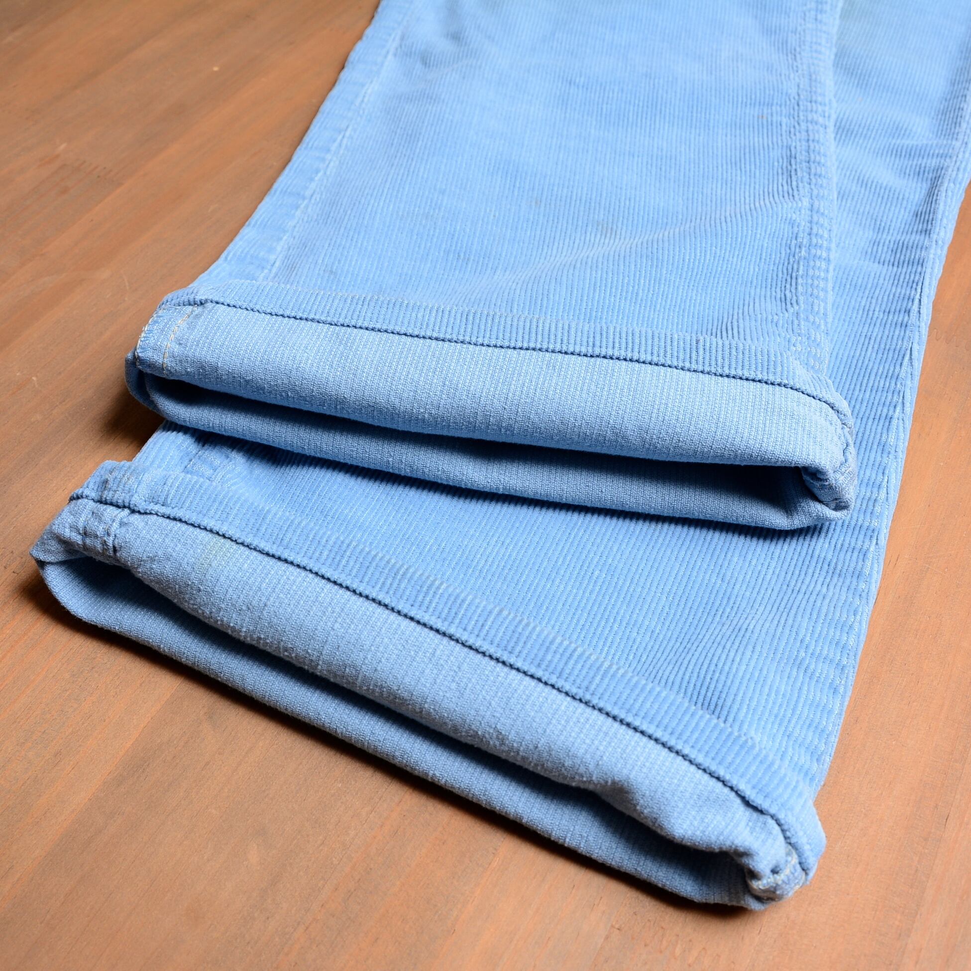 80年代製のLevi's 519、USA製のライトブルーコーデュロイパンツ、サイズW35~36。