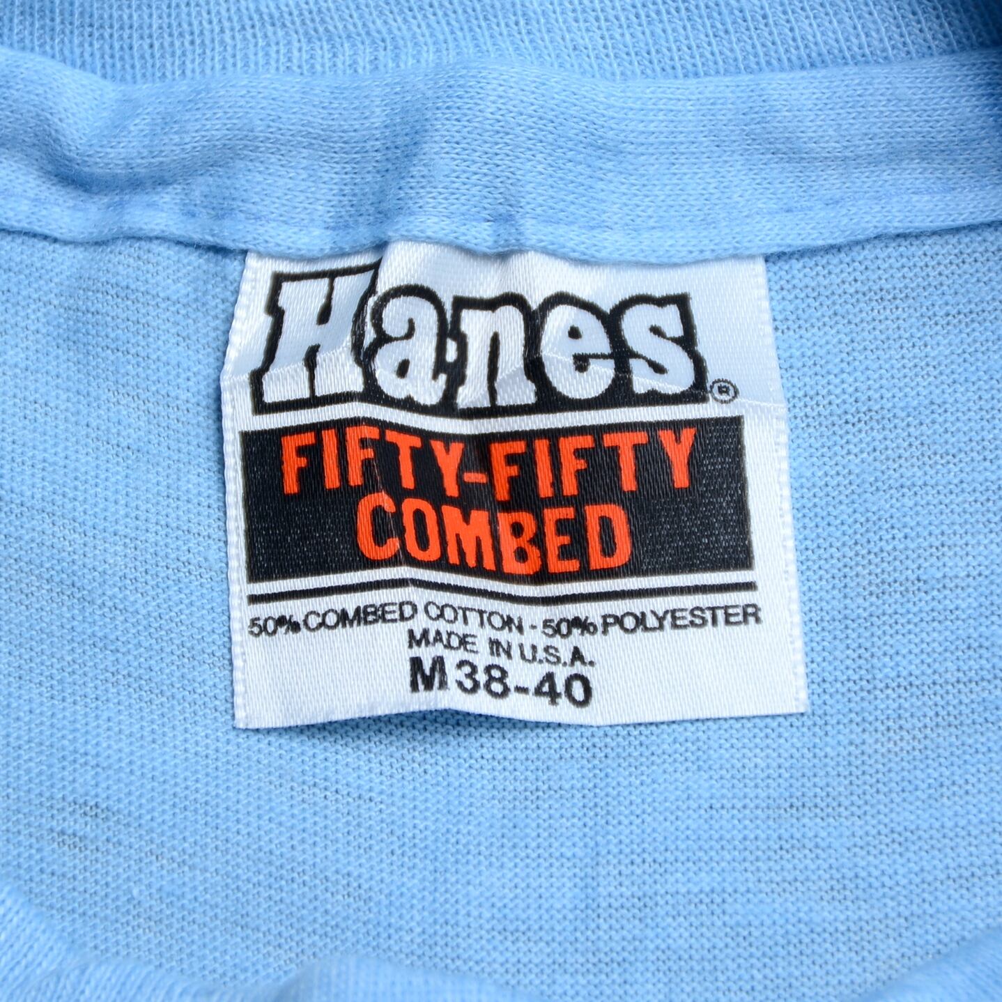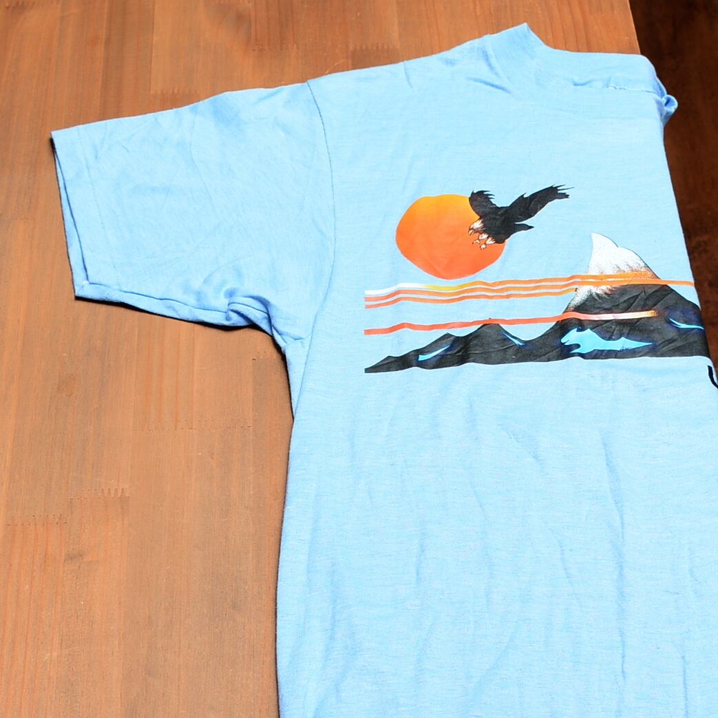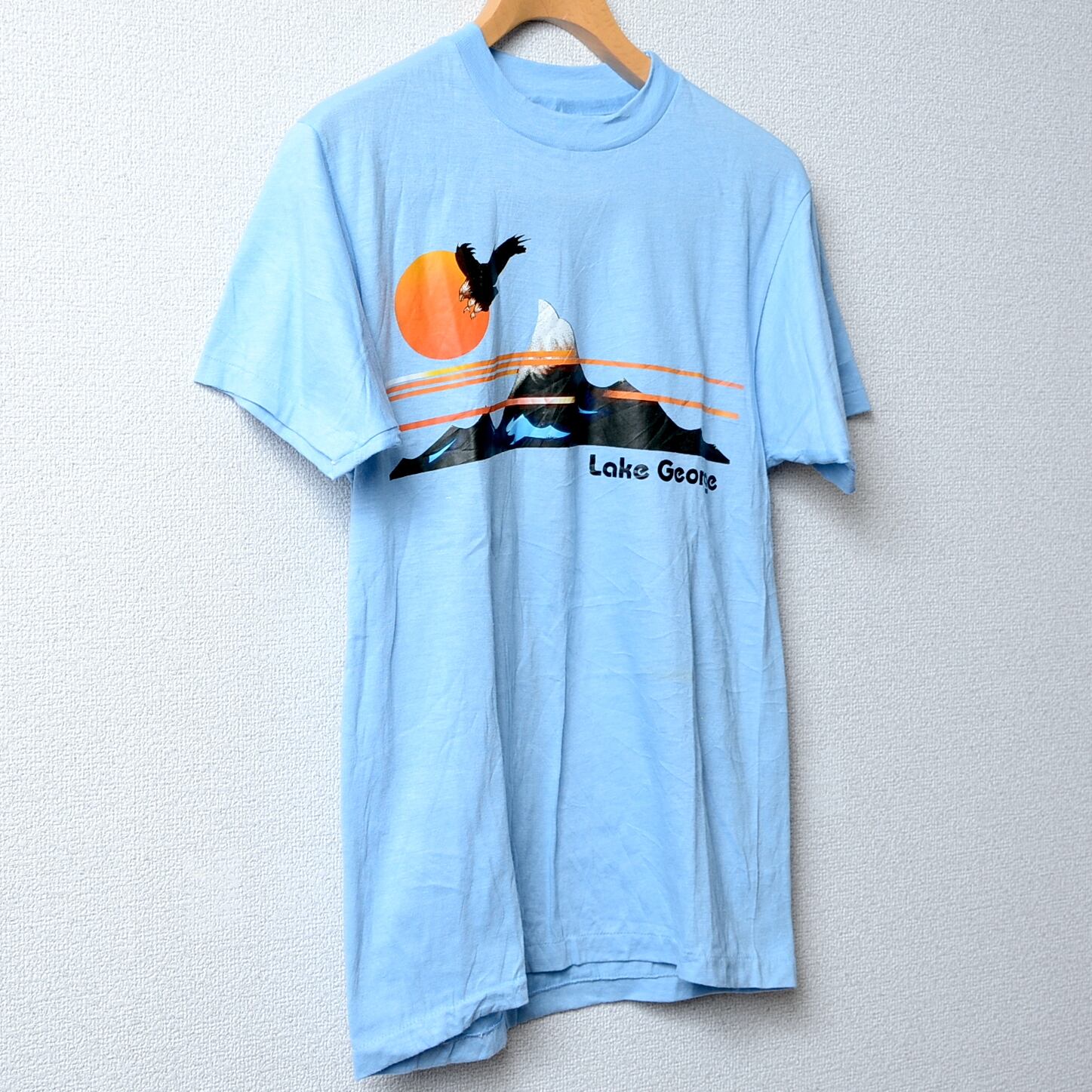 80年代のHanes製MサイズTシャツ、Lake Georgeの山と太陽のデザイン。