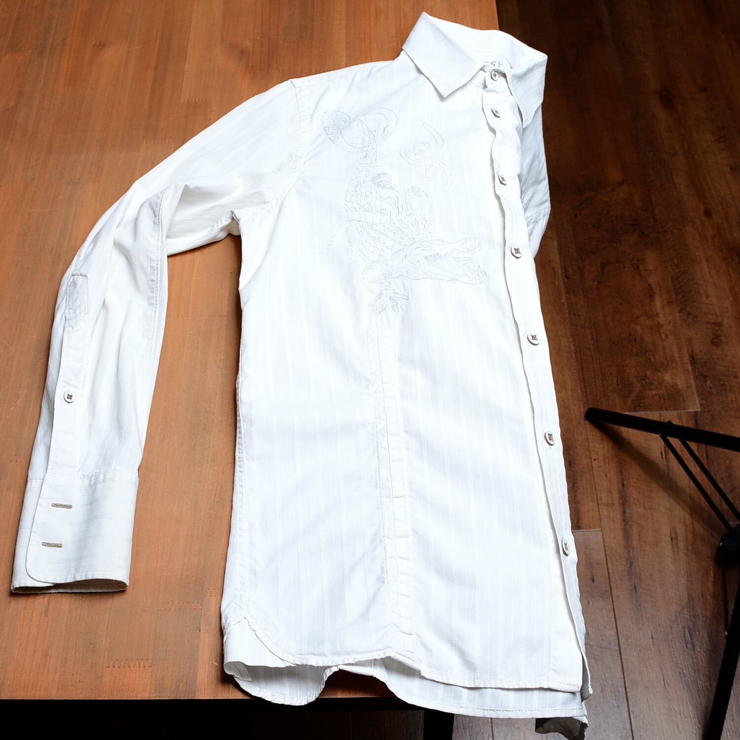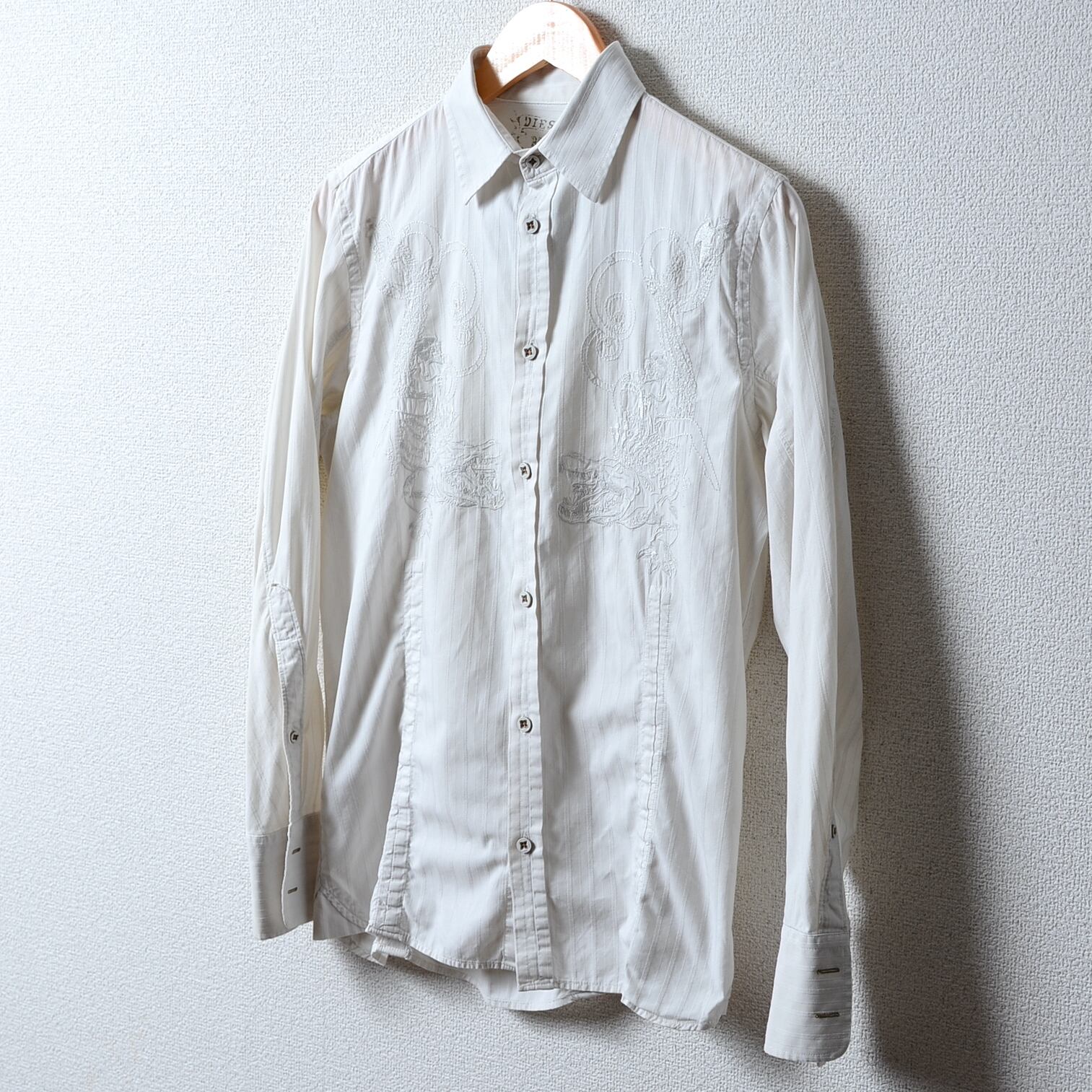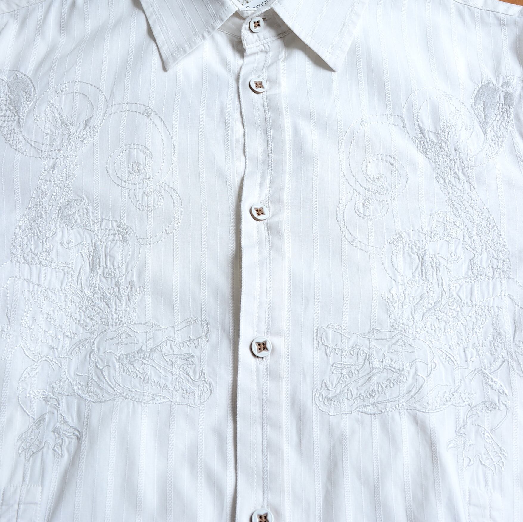 刺繍デザインのホワイトシャツ、サイズS。