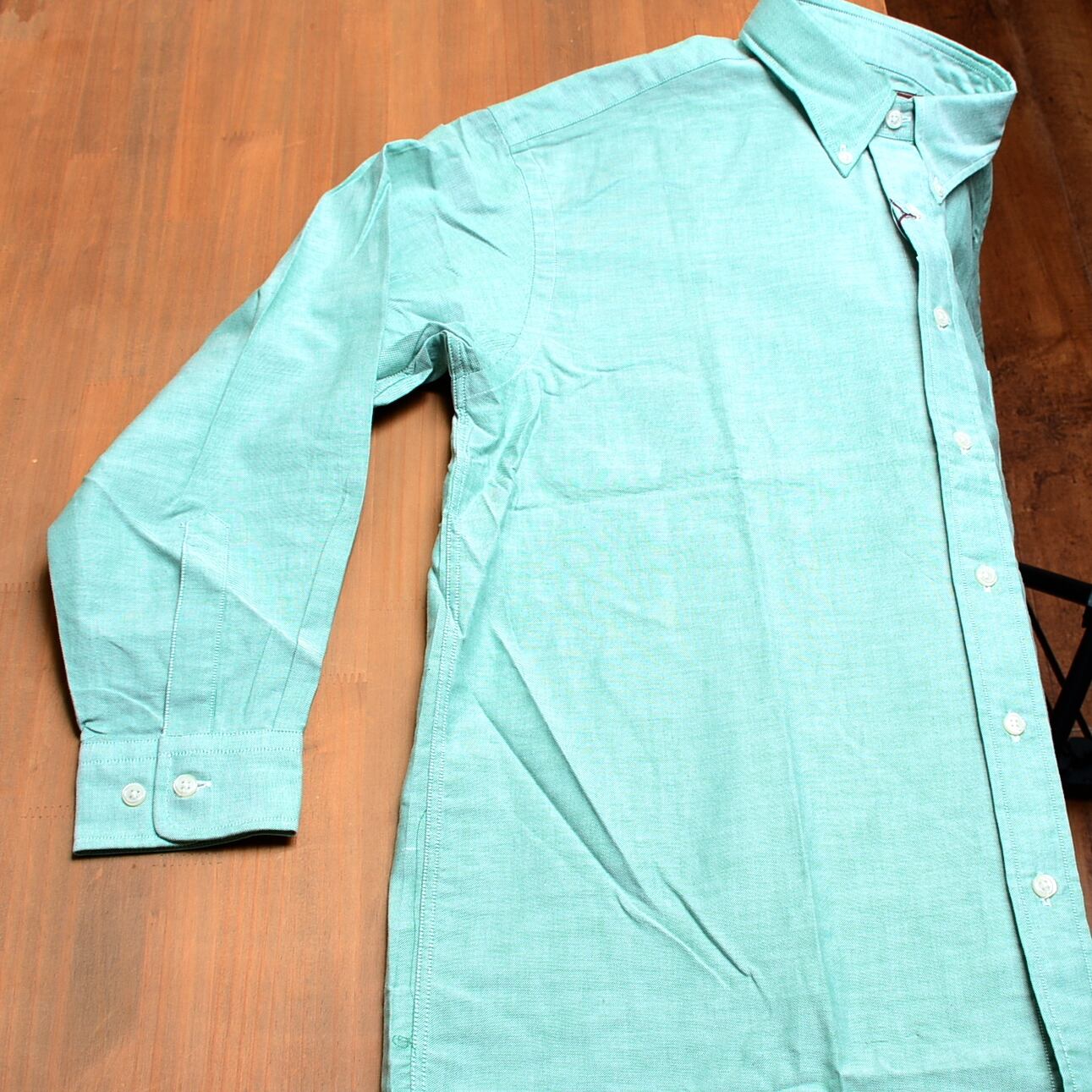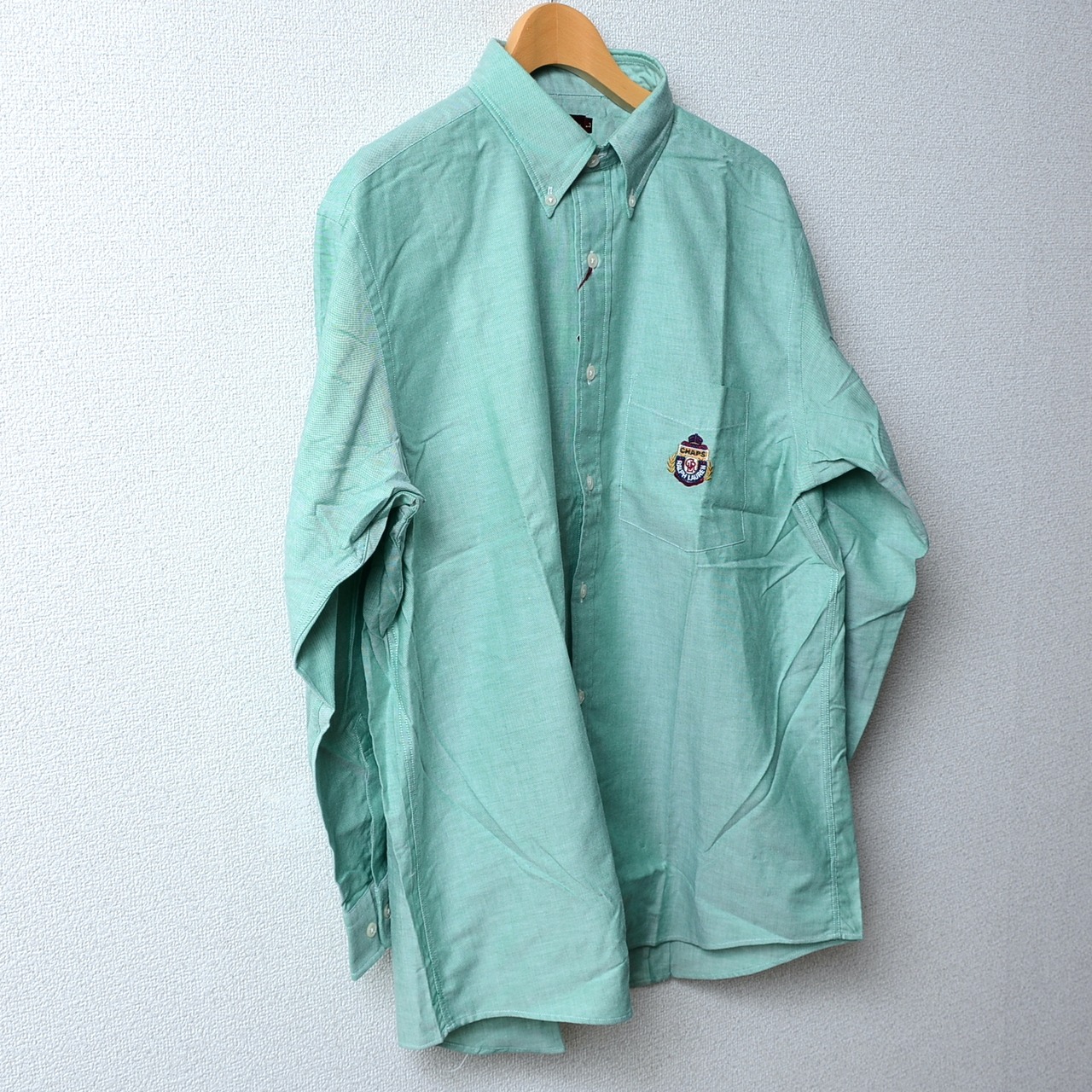 ミントグリーンのLサイズの長袖シャツ、刺繍ロゴ付きでスタイリッシュ。