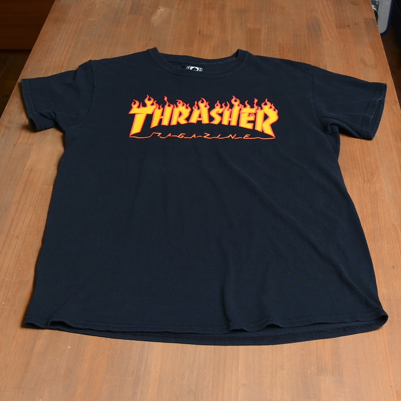 フレイムロゴが特徴のTHRASHERのMサイズTシャツ。