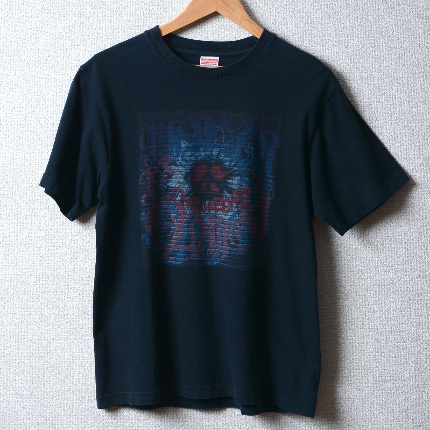 グラフィックプリントが特徴的なブラックのMサイズTシャツ。