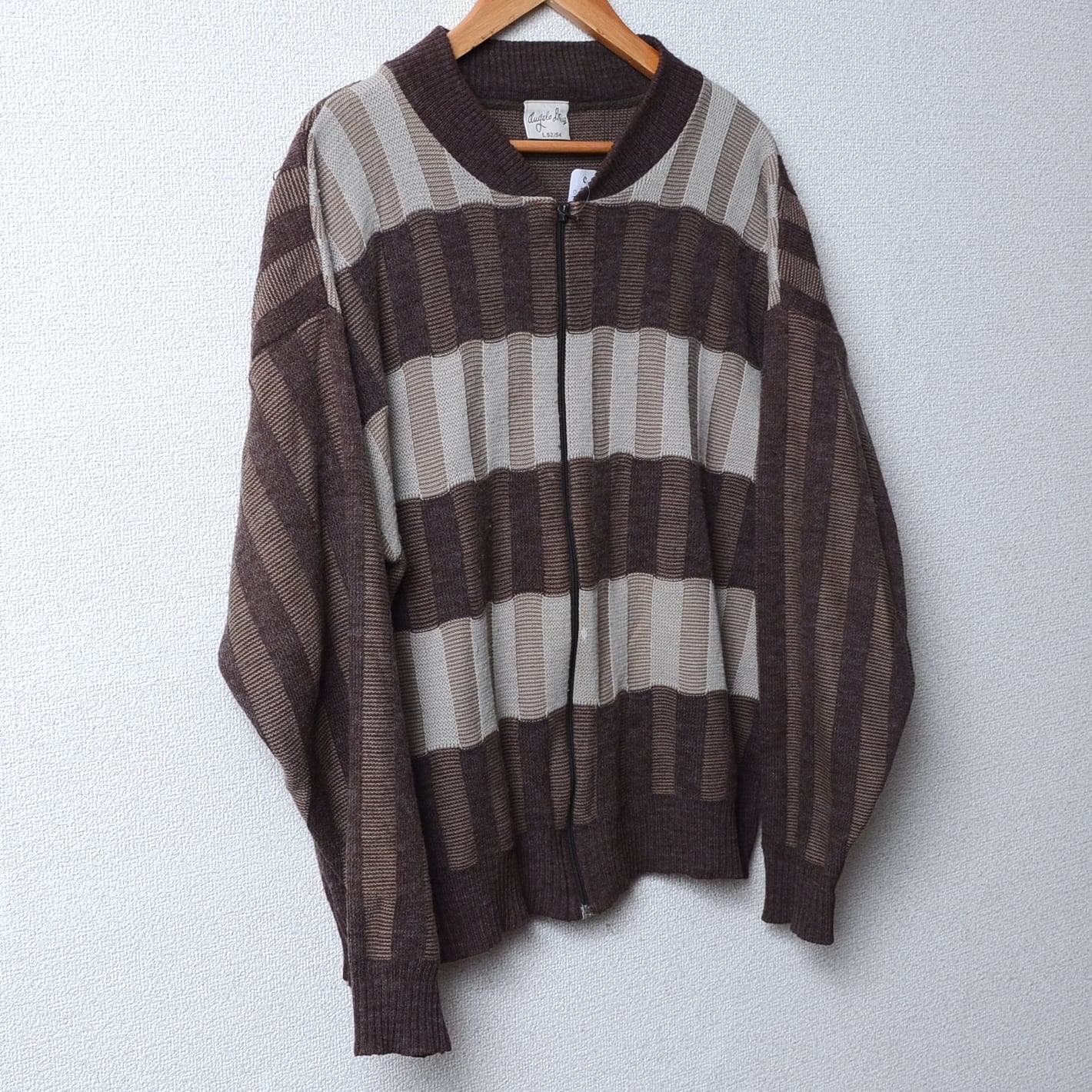 ボーダー/ストライプデザインのブラウン・ベージュのジャンパー、EU Lサイズ。