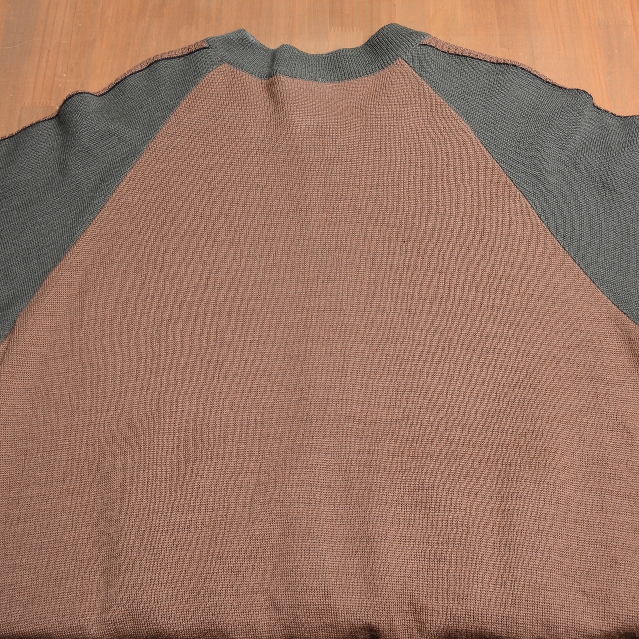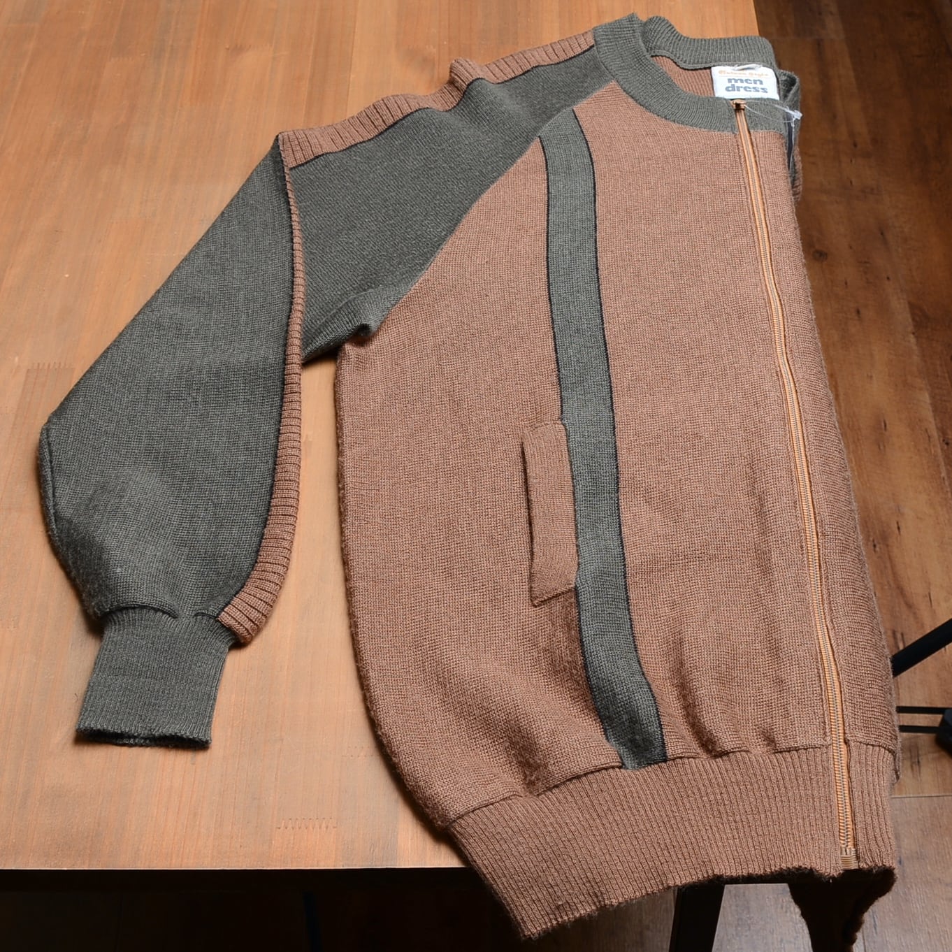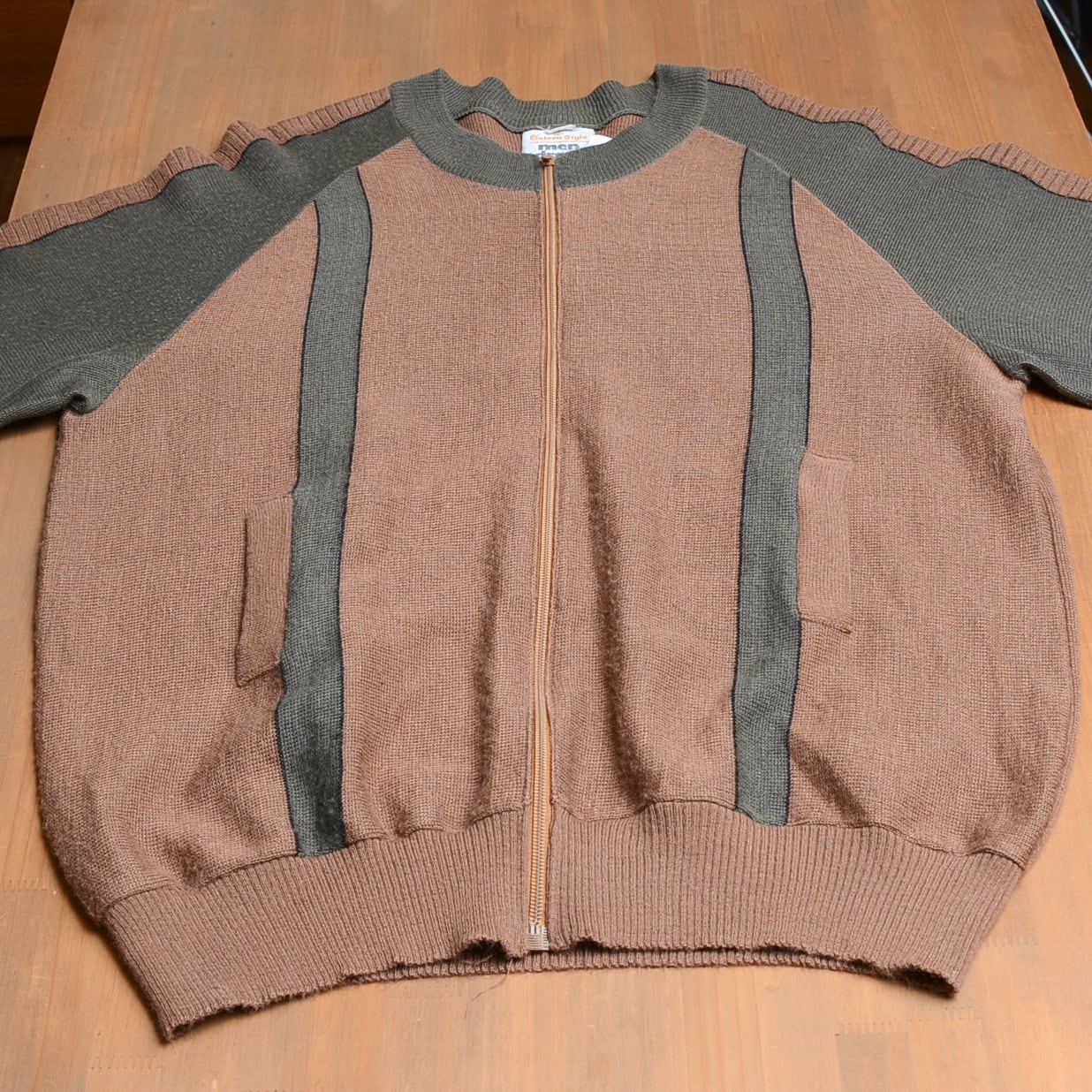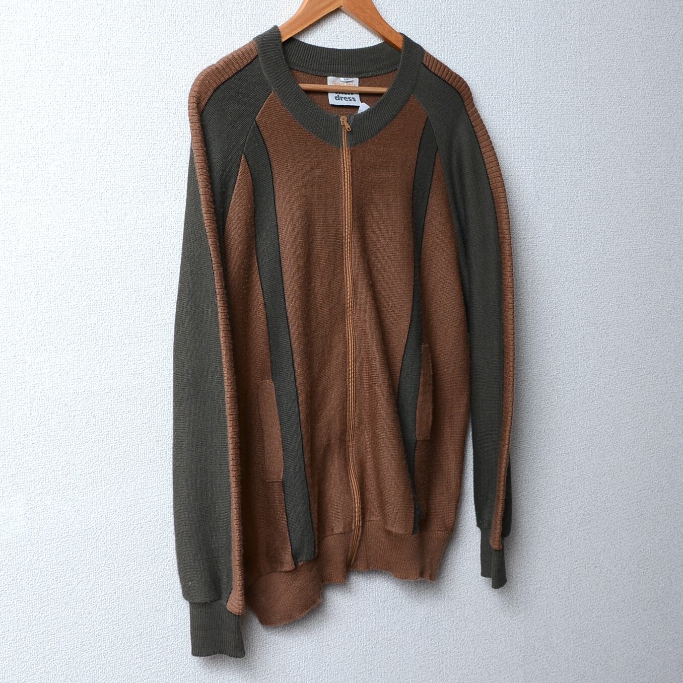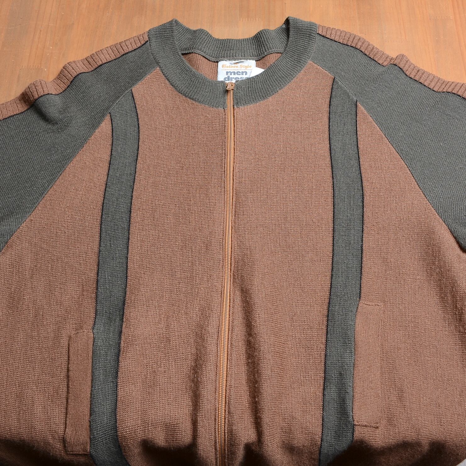 ブラウンとグレーの配色が特徴的なEU Lサイズのフルジップニットブルゾン / カーディガン。