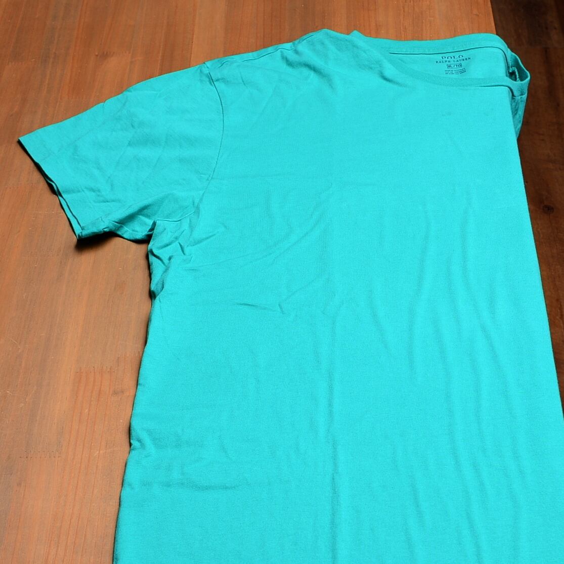 ターコイズカラーのUS XLサイズのTシャツ。