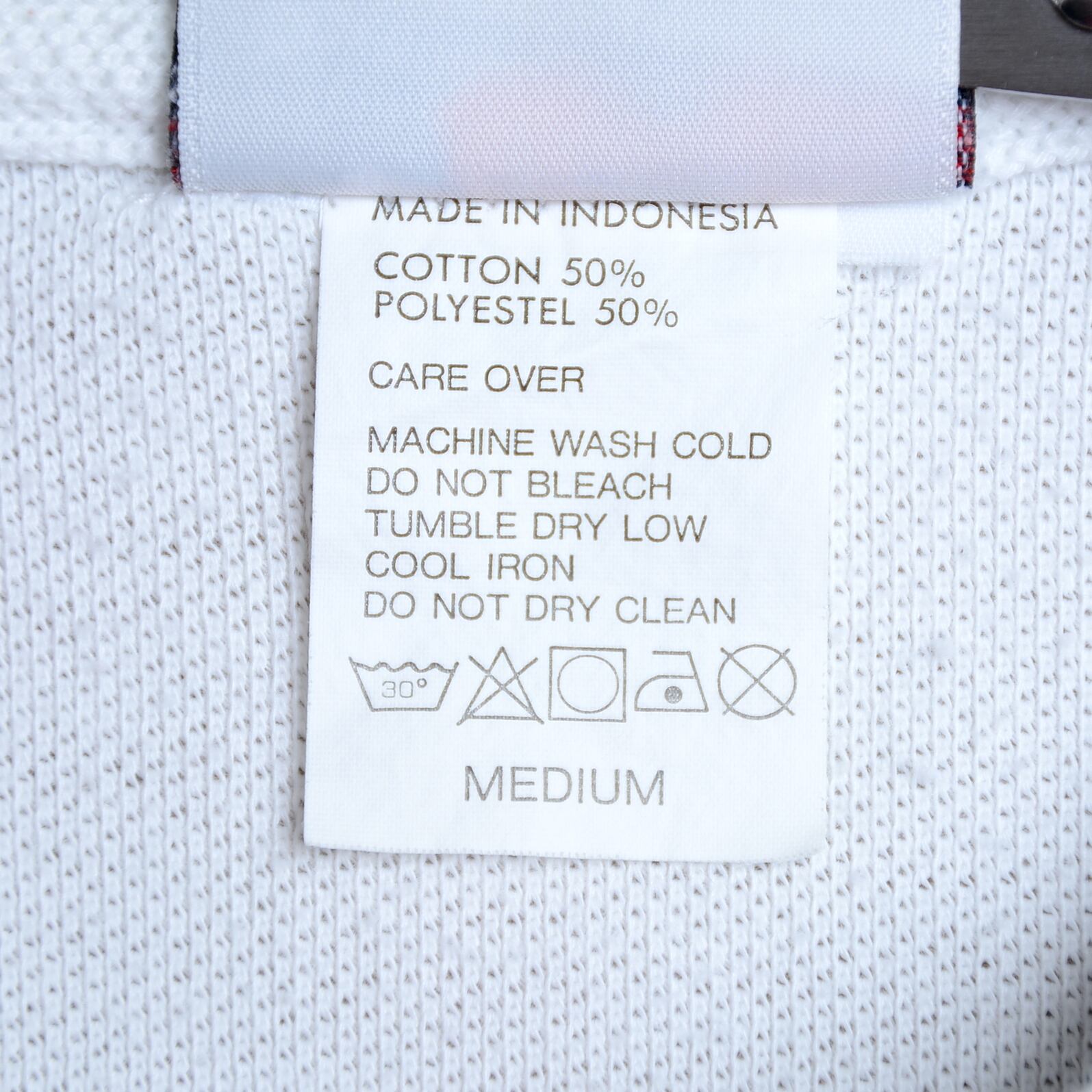 トリコロールのリブが特徴のホワイトポロシャツ。