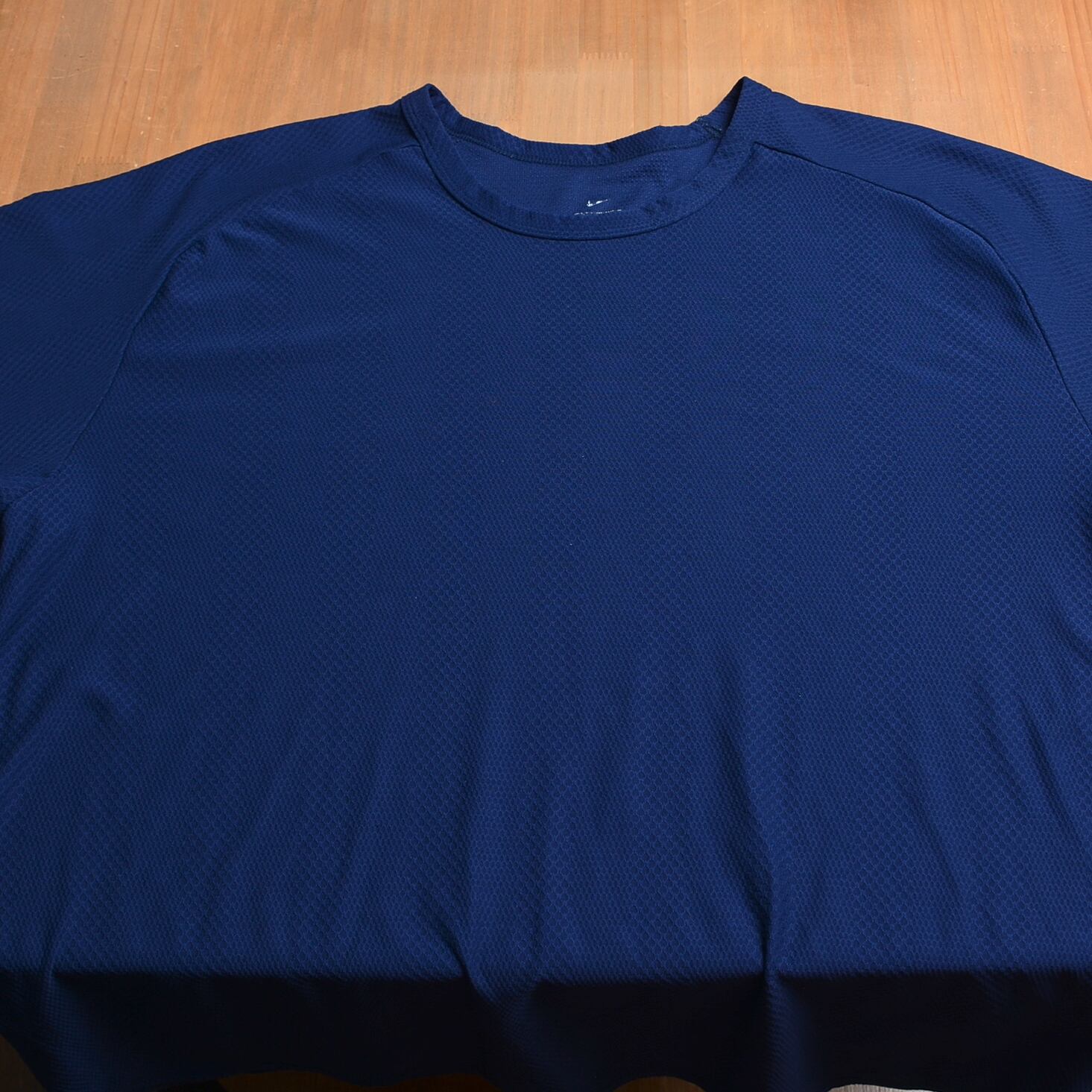 通気性に優れたNIKE DRY-FITのネイビーTシャツ、XLサイズ。