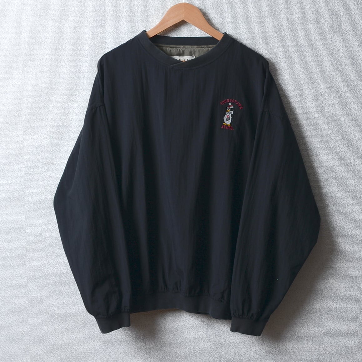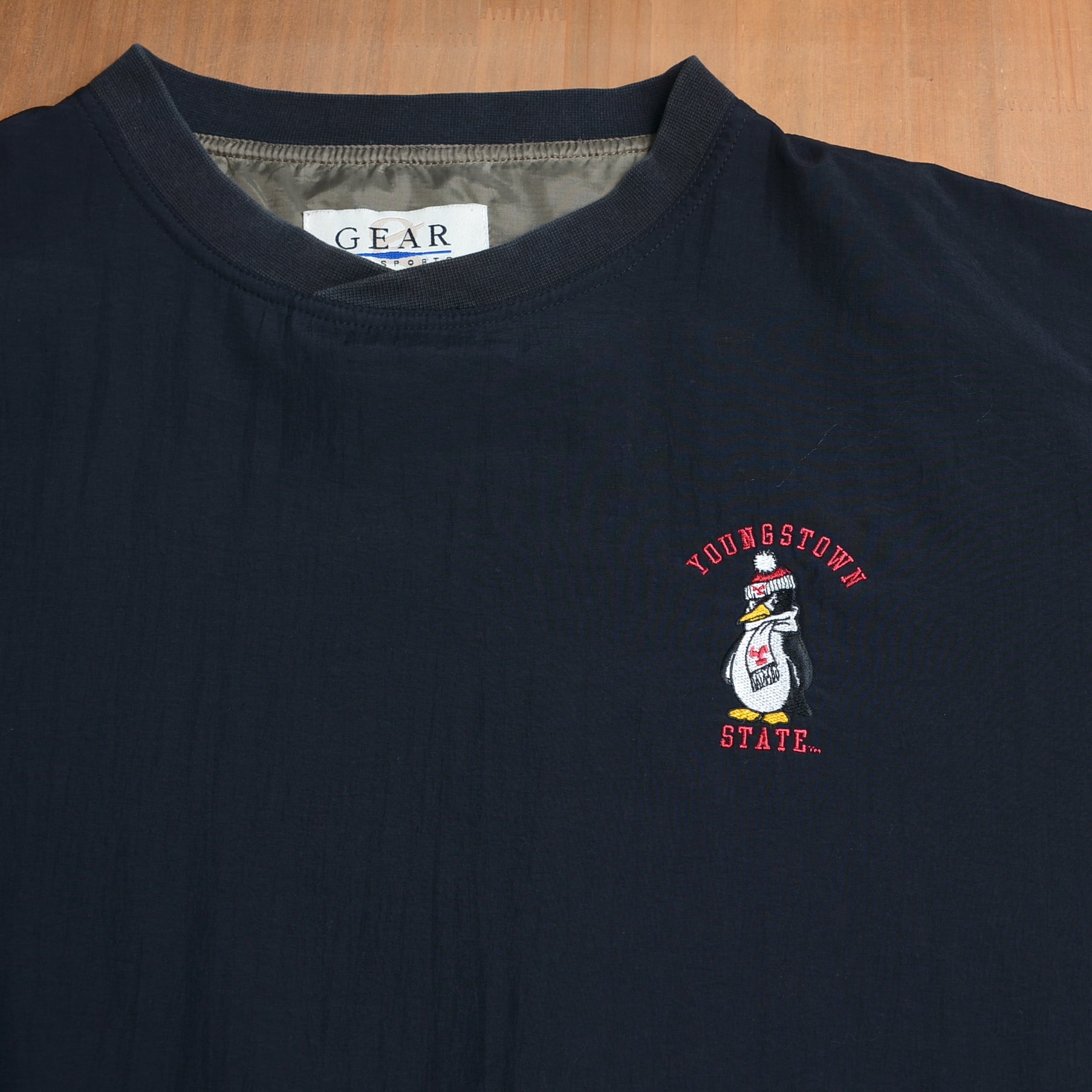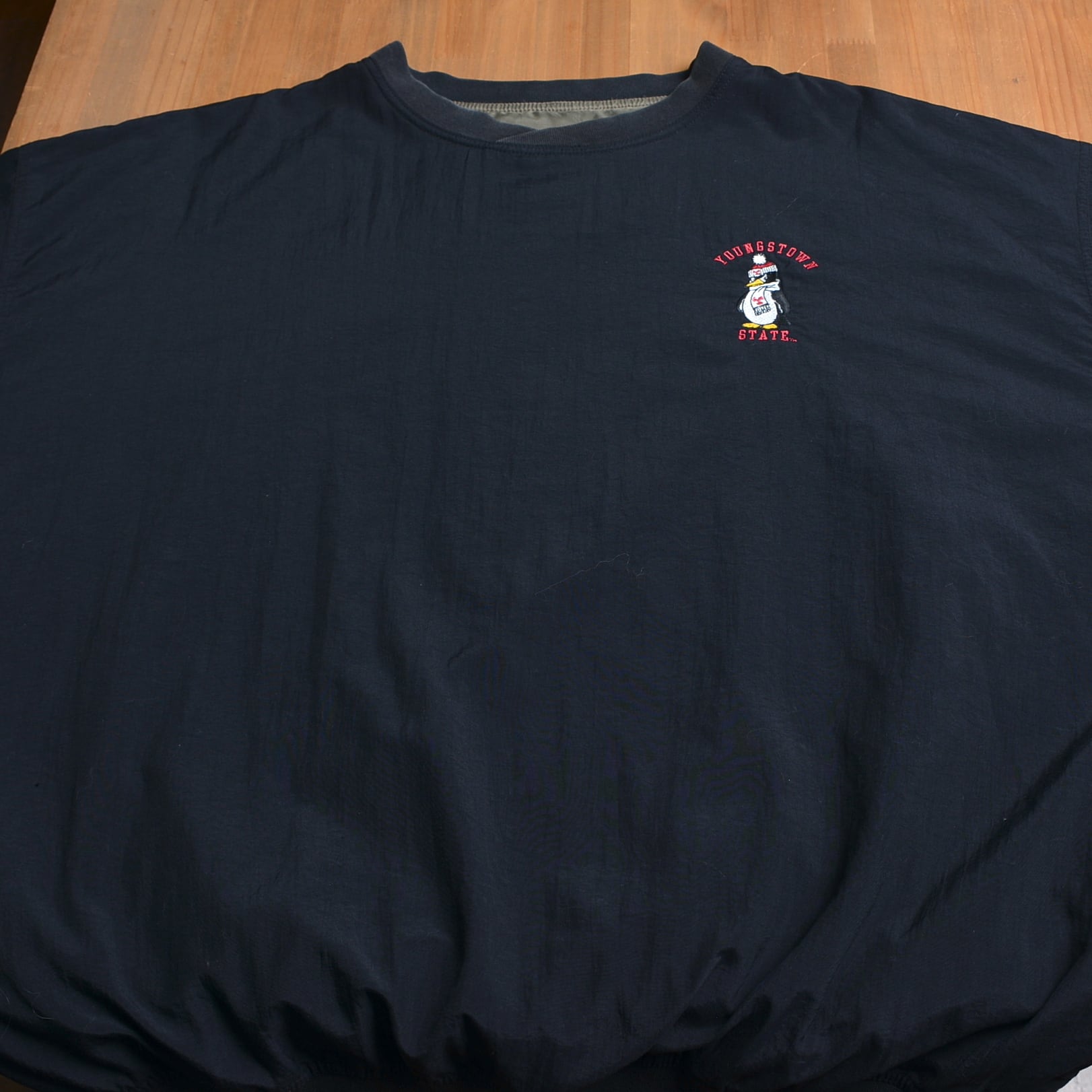 USA規格の黒いナイロンプルオーバージャケット、XLサイズ、ペンギンの刺繍ロゴ付き。