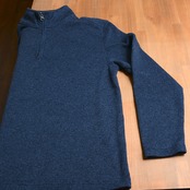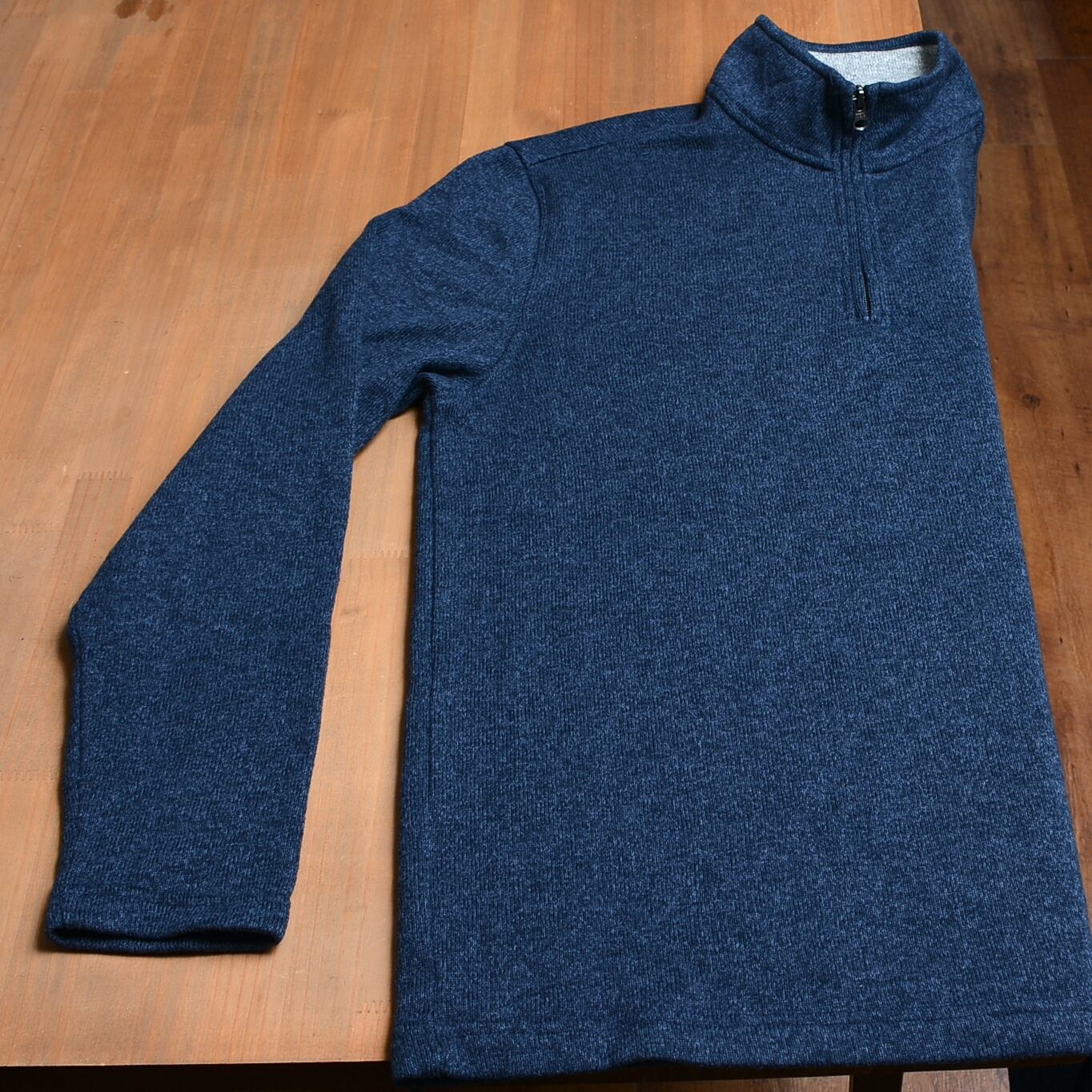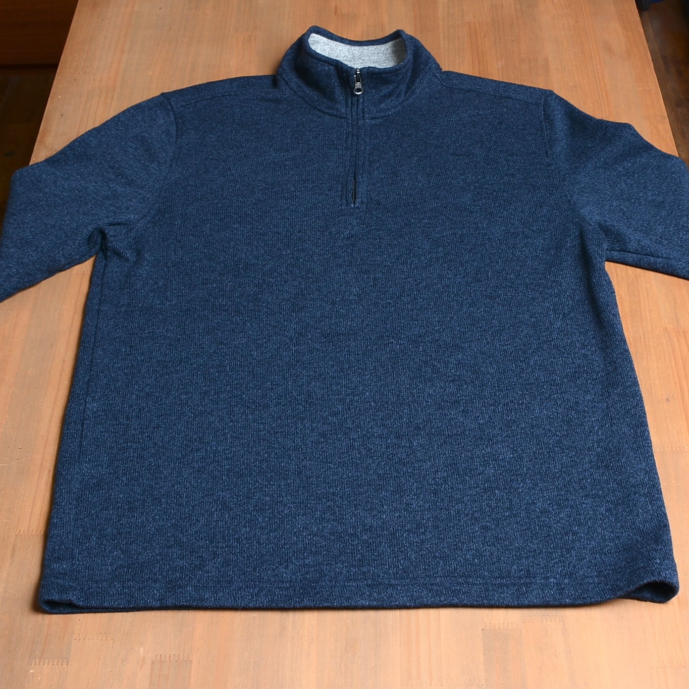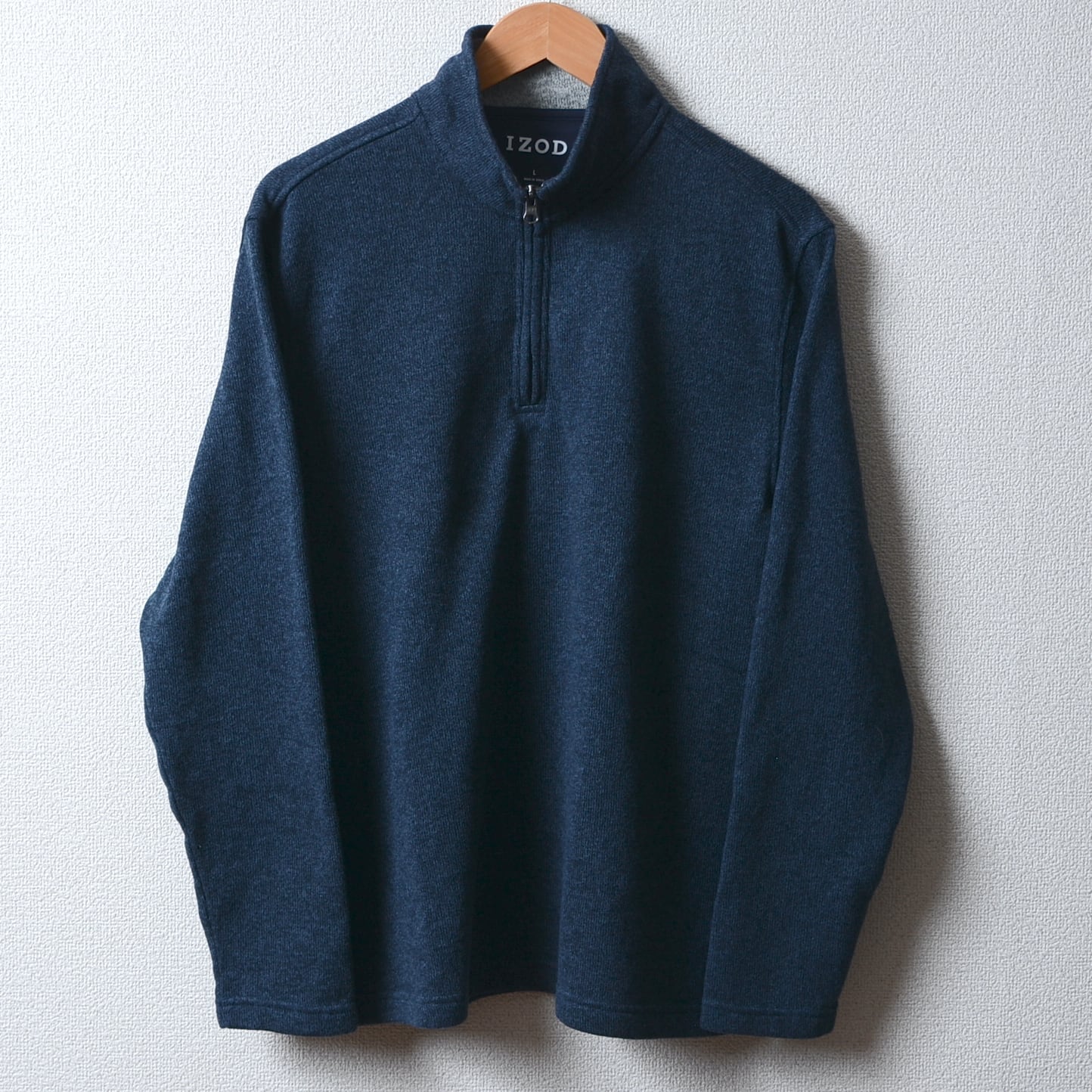 ダークブルーのIZOD製USA製ニットセーター、US Lサイズ、ジッパー付きデザイン。