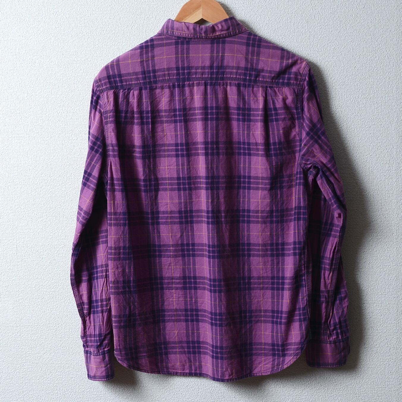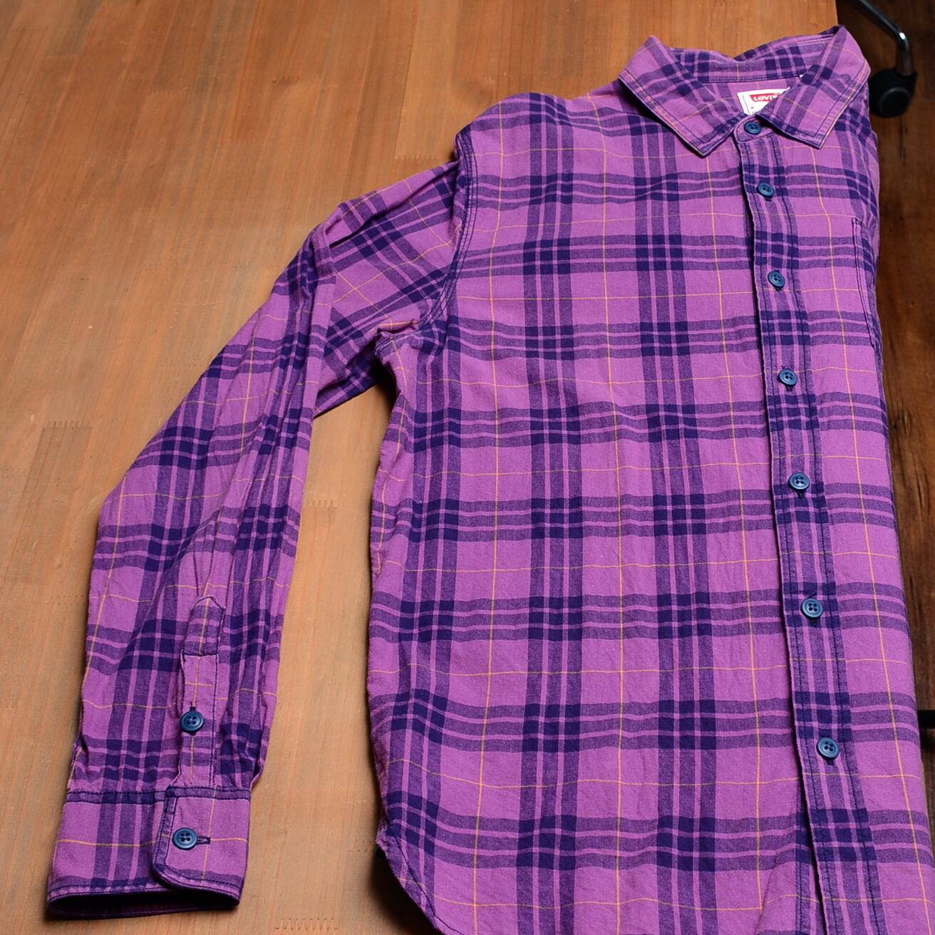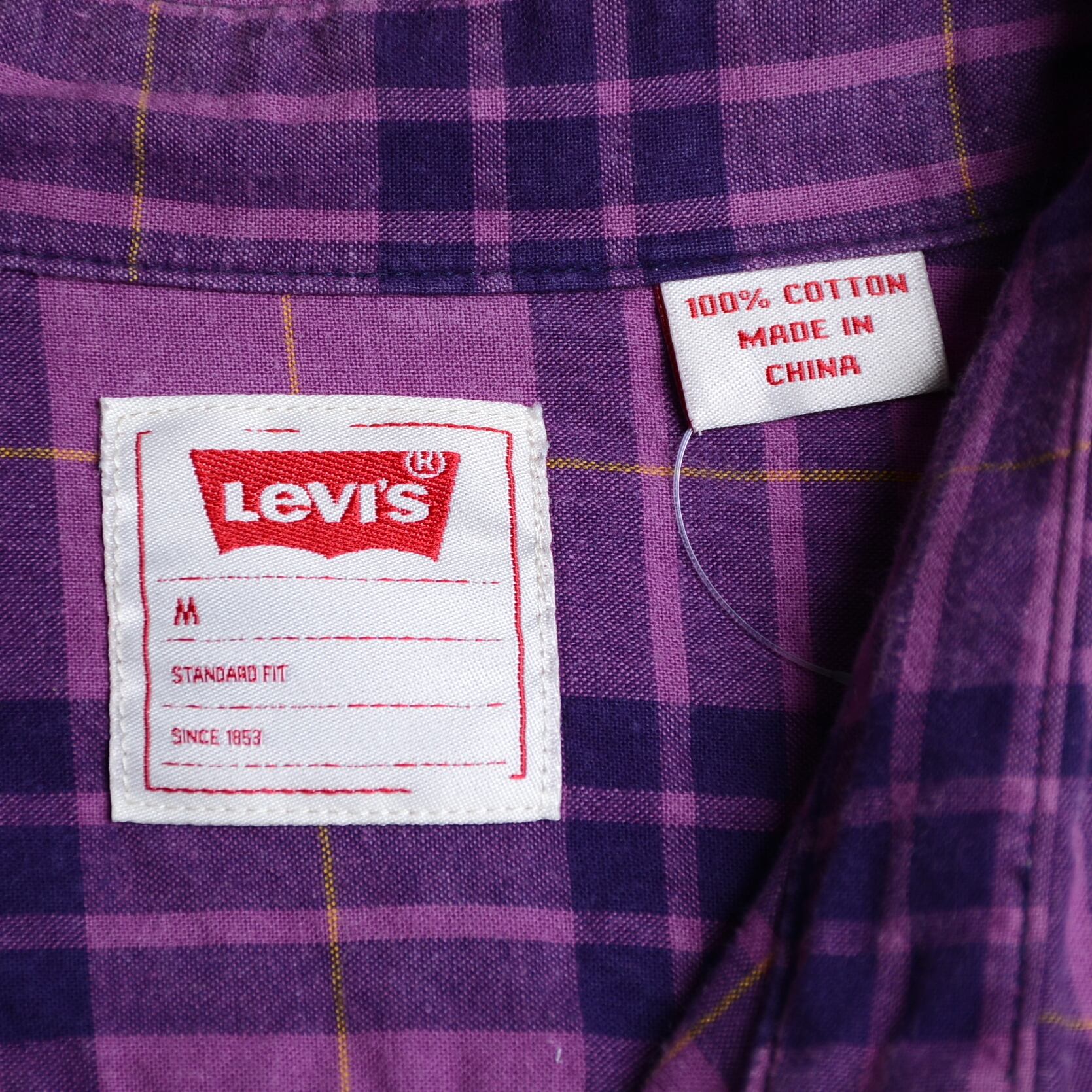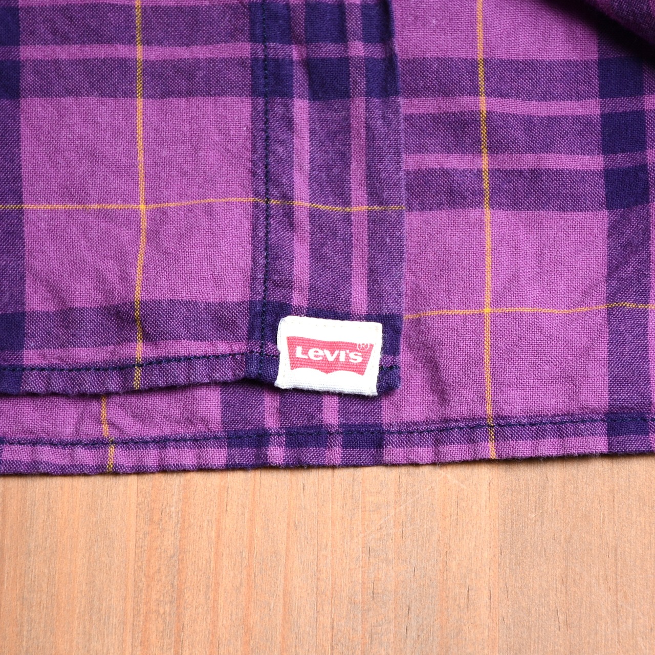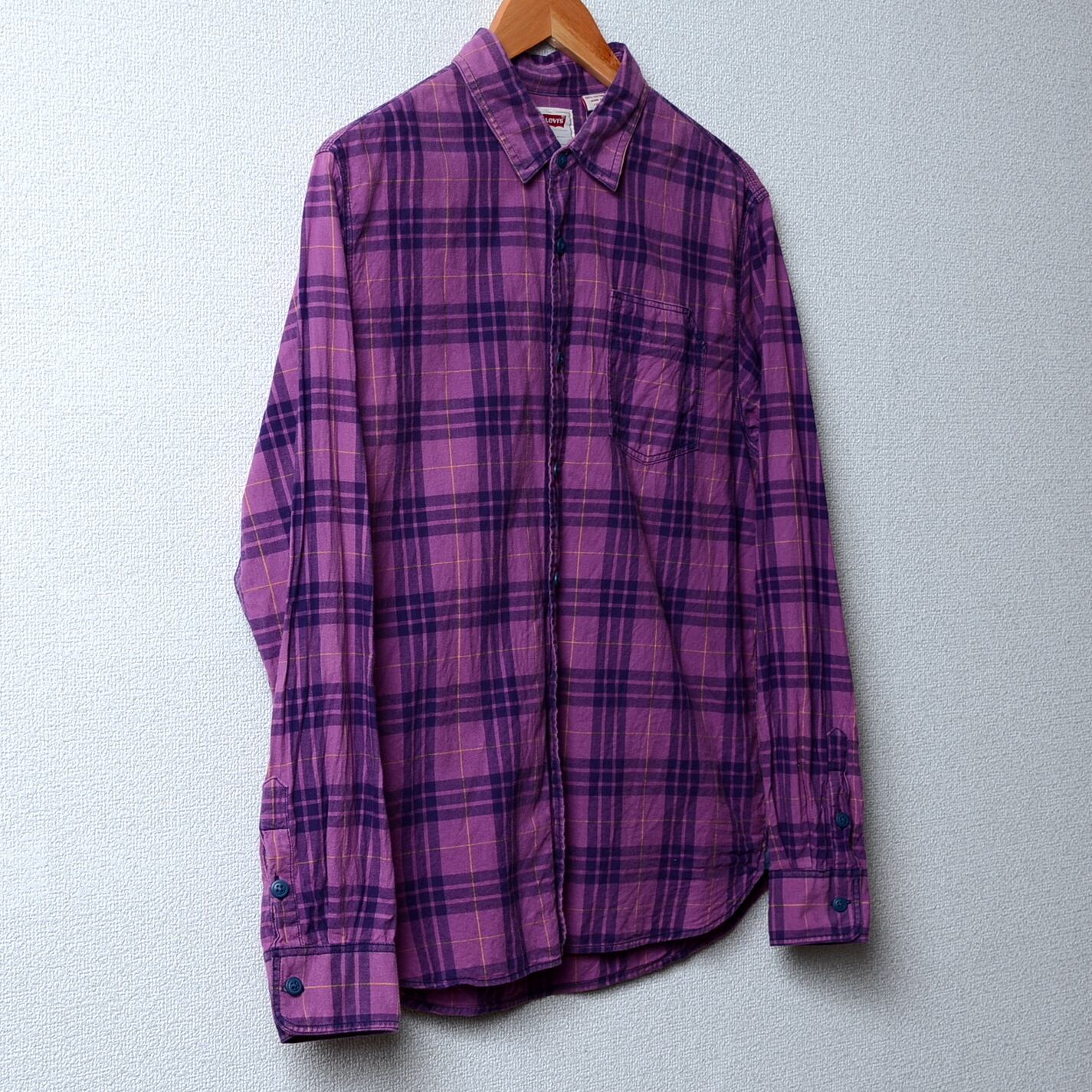 紫系チェックのLevi's製Mサイズ長袖シャツ。